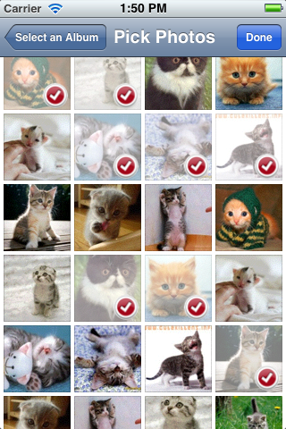 As I was troubleshooting this control I kept running into the problem that my simulator didn’t have any pictures in it. If only there was a utility to populate the photo album for me. Maybe it could grab images of cute little kittens from the internet or something? Hmm. Stay tuned to iCodeBlog for more on this!